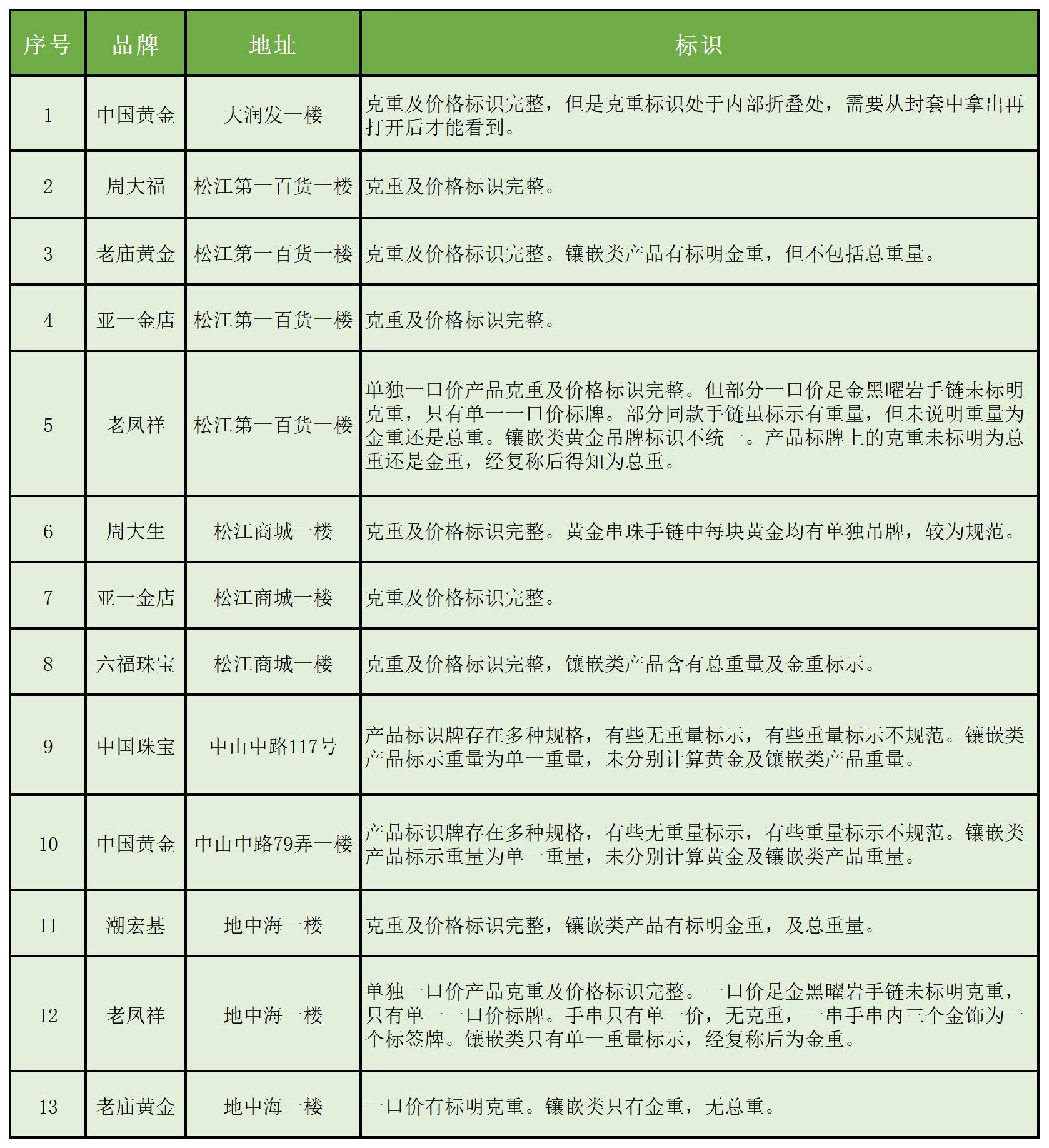 购买一口价黄金饰品时,你会主动了解换购规则吗?珠宝店一口价饰品的克重标识规范吗?近日,上海市松江区消费者权益保护委员会对该辖区13家黄金珠宝店开展调查…