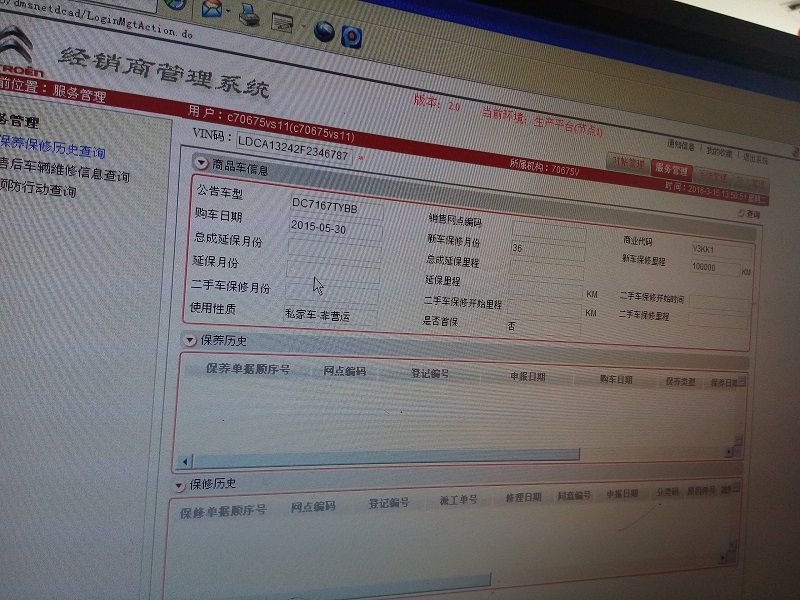 经销商管理系统显示购车日期是2015年5月30日。尹训银/摄