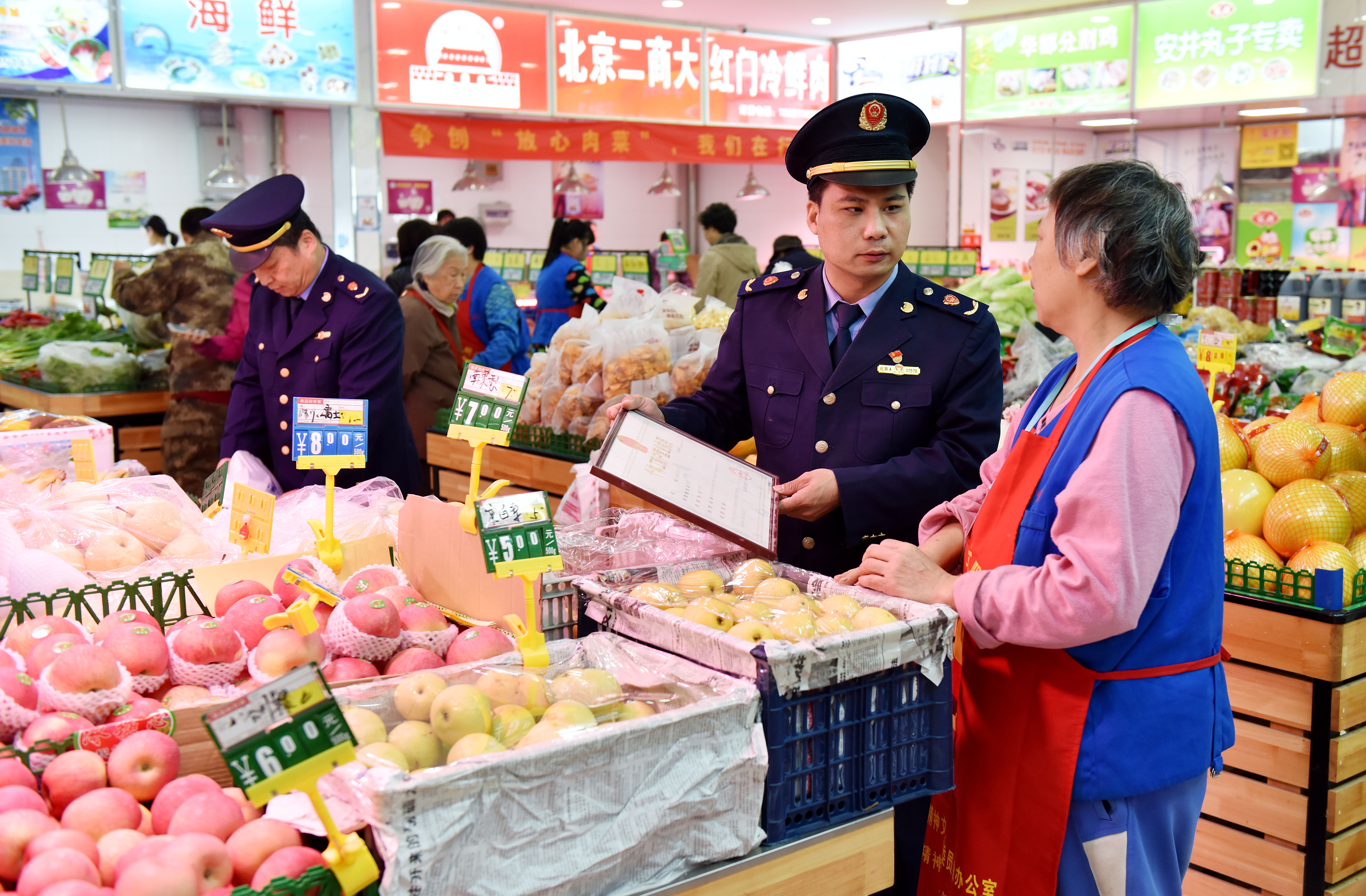 10月23日一大早,位于北京复兴门外大街的万发恒顺菜市场人群熙攘,居民们或提着网兜,或拖着小车,在货架前挑挑拣拣,选择心仪的食材。市场里明亮整洁、商品丰…